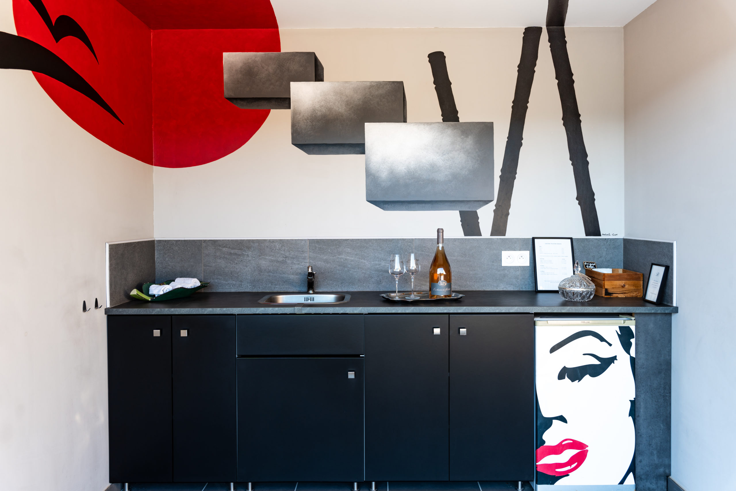 Le pool house est équipée d’une cuisine à la disposition des hôtes, si vous souhaitez vous-même vous préparer une collation.